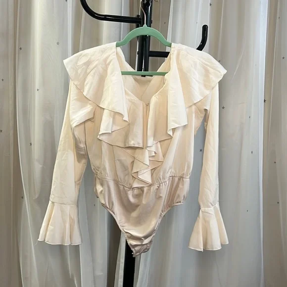 Ruffle Bodysuit Size 12 Never worn First button fell off
