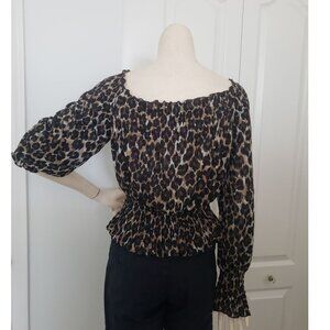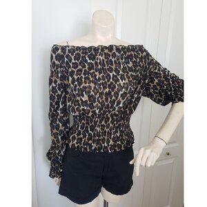 Ruffle Retro Style Blouse animal print puff sleeve top off shoulder medium