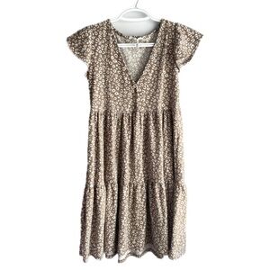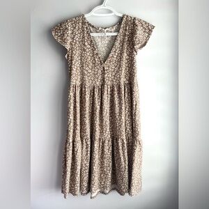 Ruffle Tiered Sundress in Tan and White