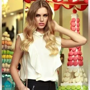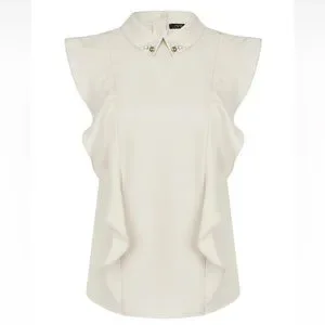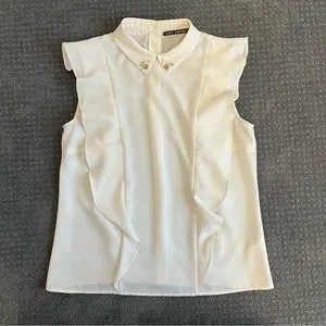 Beautiful ruffle top, never worn Ornate close; Back button detail; Size M/L Chest: 19.5” Waist: 19” Length: 24”