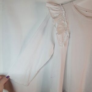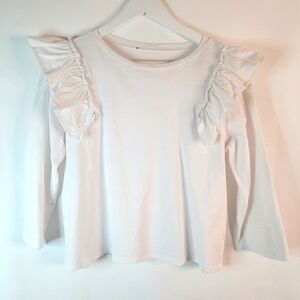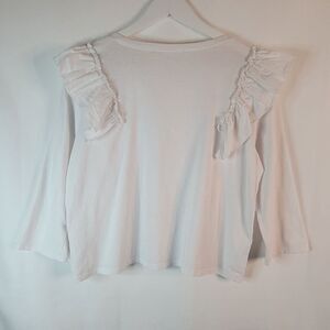Cute shoulder ruffles white cotton top with 3 quarter length sleeves. Crop length. GUC