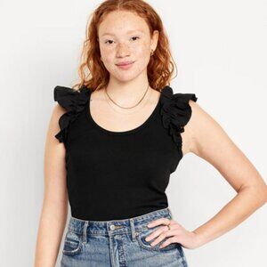 Washed one time never worn 96% cotton, 4% spandex Sleeveless, sweetheart neckline, ruffle accents