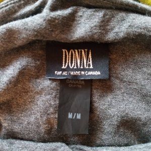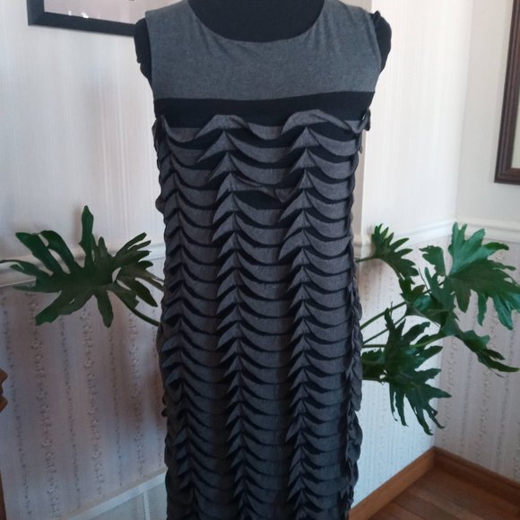 Grey and black ruffled dress. Super soft. Made in Canada. Knee length.