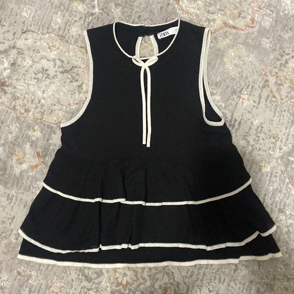 Black top with ruffles, size small. Perfect for dinner or the office.