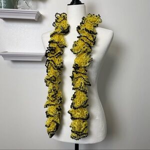 Ruffs & Pom-Poms Crocheted Yellow Black Scarf