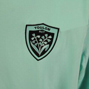 Up for sale is a rugby jacket. It has a mint green base colour with the Nike swoosh stitched on one side of the chest with the Toulon RTC logo stitched on the other side. What a great jacket do not miss out on it.
