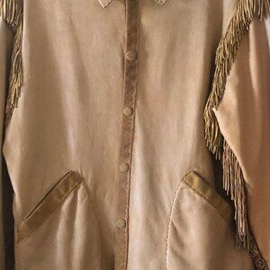 Rugged Hand-Sewn Fringed Buckskin Jacket – Ladies Small