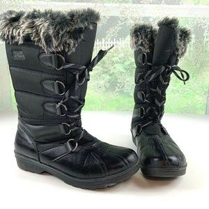 RUGGED OUTBACK WINTER SNOW Waterproof BLACK Boots WITH FAUX FUR