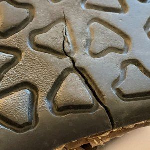 Great preowned condition with signs of normal wear. Also, has a crack in sole, see pictures. It could be glued, it does not go all the way through. Price reflects this.