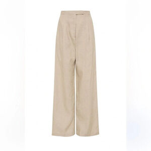 Rumere Linen wide leg pants mid rise cream colour sleek modern clasp closure