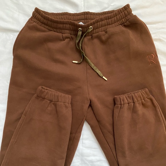 Runaway The Label Chocolate coloured Track suit. Size Large. Excellent condition. Pockets on side as well as embroidered logo RW. Very flattering high waist and tie.