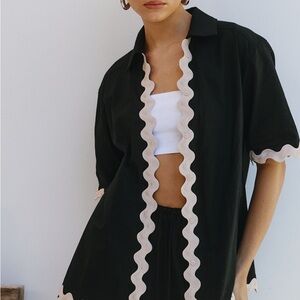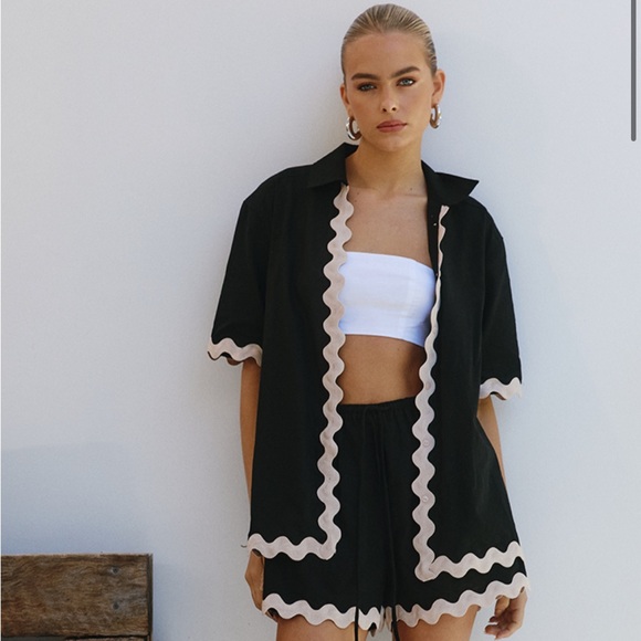 Stylish black and cream women's shirt and shorts set. Perfect for casual outings and comfortable wear. Didn’t fit me well brand new with tags! Perfect for vacation and summer!