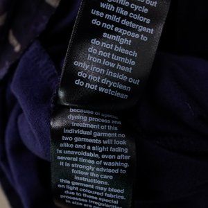 A unique jacket from Rundholz that features a printed mesh with an abstract indigo, grey, and black motif throughout, soft jersey cotton lining in navy, ruched front patch pockets with faux flap pockets above, a front button closure, and an angled hem at the back.