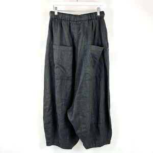 These fantastic balloon trousers from Rundholz Black Label are made with a lightweight woven ramie in a faded Black, and feature an elasticized drawstring waist, slanted side pockets, back patch pockets, and a longer dropped crotch to give the illusion of a skirt when worn.