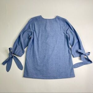 Rungolee Blue Jean Chambray Split Neck Bow Sleeve Casual Boho Hippie Top Shirt