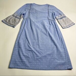 Rungolee Boho Blue Chambray Cottagecore Embroidered Bell Sleeve Tassel Dress
