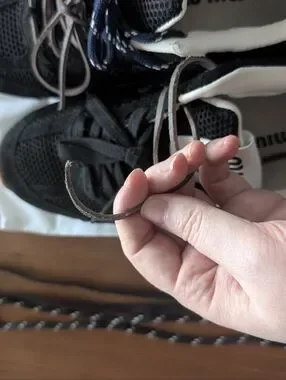 They are in good condition. In the last pic the shoelace on the left shoe is slightly broken, this does not affect the integrity of the shoe.