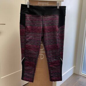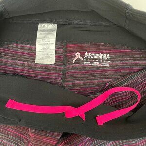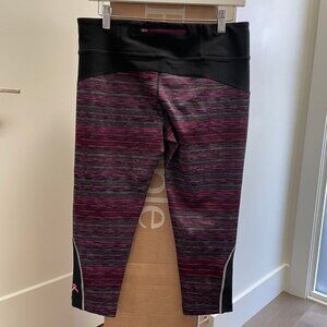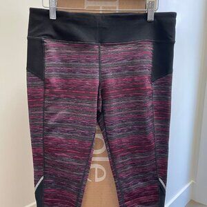 Running Room Fit-Wear Striped Crop Capri Length Leggings Pink Purp Blk Gray Sz M