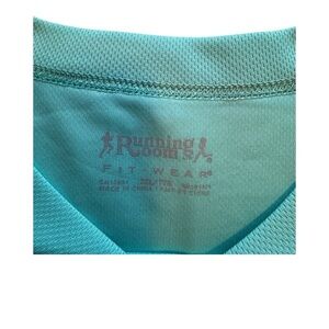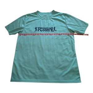 Teal technical fabric t-shirt featuring Running Room logo. Ideal for exercising or just for everyday wear.