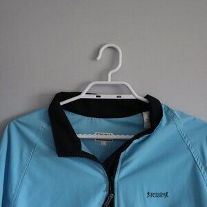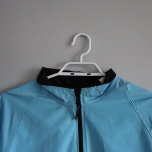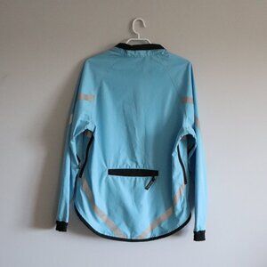 Running Room Women's Sz S Blue Reflective High-Low Full Zip Wind Breaker Jacket
