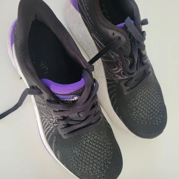 Black Running/Training Sneakers, with a purple taint; New Balance Fresh Foam Vongo; I worn it a few times to gym classes. I want more cheerful colour.