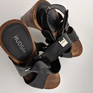 Superb leather sandal with wooden heel from the Rudsak brand. Perfect for a trendy boho look. Size 39