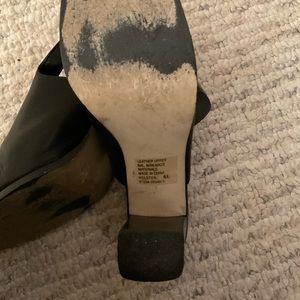 Black leather sling back with approximately 2 3/4 inch square heel