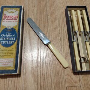 Rusnorstain Robert F. Mosley Sheffield Vintage Dessert Knives Cutlery Stainless
