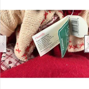 Adorable teddy bear "Chantilly" by Russ Amram's, wearing a red felt dress, black & white gingham underskirt, and red hat. Teddy bear is 18" long measured from head-to-toe. Style #6029. Teddy bear is pre-owned, and has the original tags attached.