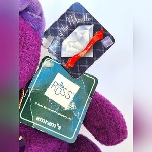 Russ Berrie Bears Of The Month "February" Purple Teddy Bear Plush Amethyst Gift