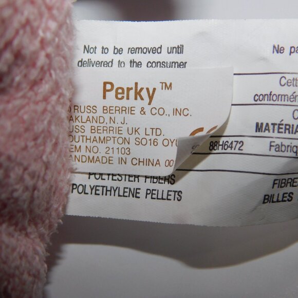 This Retired Russ Berrie Luv Pets 5" Plush Stuffed Bean Bag Pink Pig PERKY chamois feel is in great clean bright soft condition with tush tag still attached . Measured 5" from top of head to rump sitting.