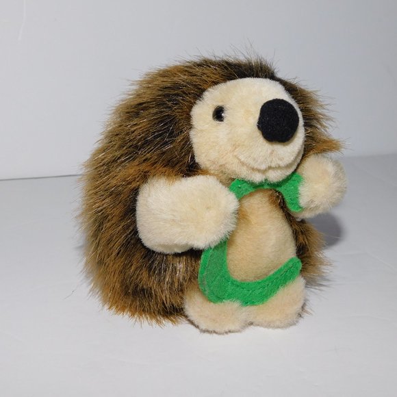 This super cute Russ Berrie Hedgehog of Leafy Lane 4" Plush Brown Hedgehog Holding Green Letter C is in Excellent clean condition with tush tag still attached at rear.
