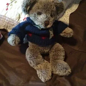 Russ teddy Beare with navy blue sweater, good condition just sat in a cabinet size medium,