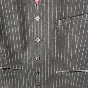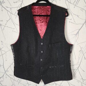 Russell Simmons Black Pinstripe Wool Button Front Waistcoat