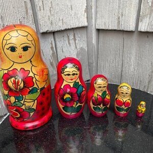 Russian Matryoshka Nesting Doll 5 Pieces Total Large Stacking 8"