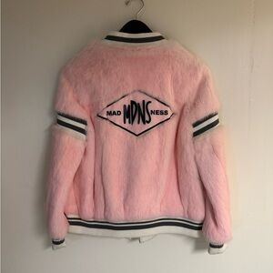 Brand: MAD MDNS NESS Pink Fur Bomber Jacket