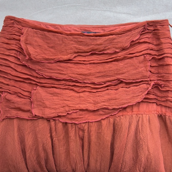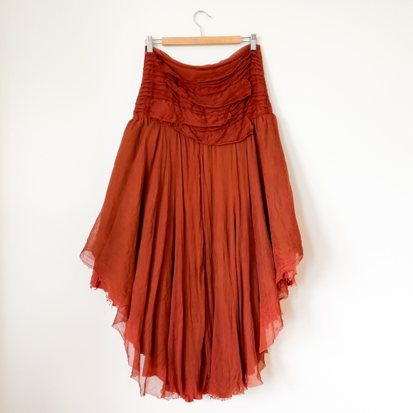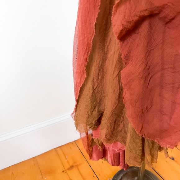 Rust Brown Layered Silk Skirt Size Medium - Thrashed Grunge Fairy - Burnt Orange