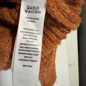 Earth-tone cable-knit polyester & wool blend sweater in great gently worn condition.