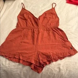 Rust Orange Romper with Ruffle Hem