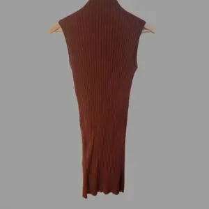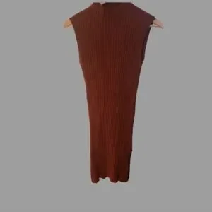 Elevate your style with this sleeveless ribbed knit dress. Perfect for any occasion, this brown dress offers a sleek and comfortable fit.