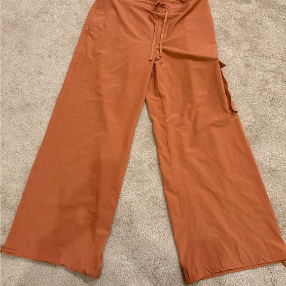Stylish rust-colored wide-leg pants. Perfect for casual wear. Also has feature where you can tie the leg bottoms