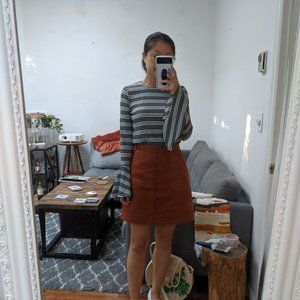 The rust colour of this skirt makes it perfect for fall but also versatile enough for year-round outfits! Also, it has pockets.