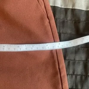 Beautiful mid-rise pants in a rusty/cinamon brown shade that is perfect for Fall.