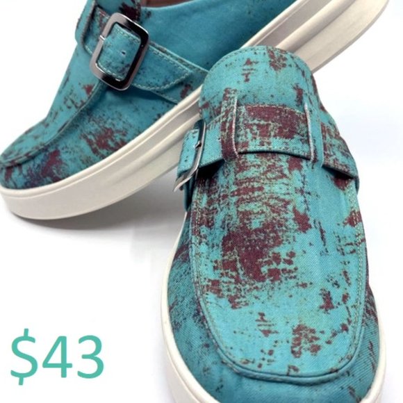 This years hottest shoe! Super comfy with memory foam insoles, Rusted Turquoise Slides. Comes in whole sizes only (we suggest going up) if you are in-between sizes.