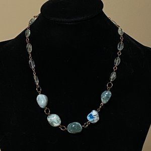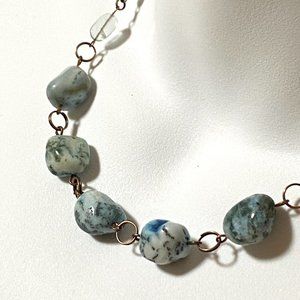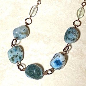 Rustic Agate & Fluorite Copper Necklace, Genuine Green Tumbled Gemstone