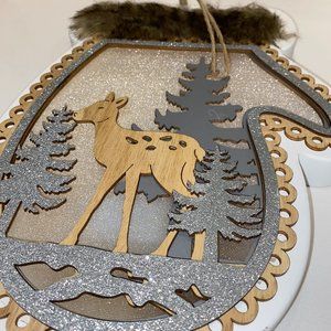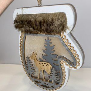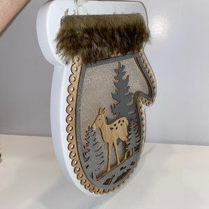 Rustic Christmas Wall Decor Wood Layers Lightbox Shaped Mitten