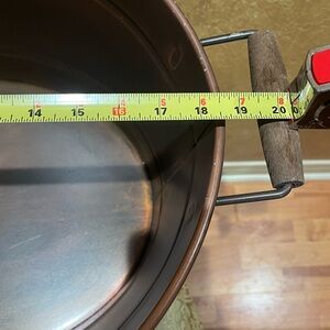 Enhance your gatherings with this rustic copper ice tub. Perfect for backyard BBQs. Measurements: circumference 18 1/2”, width including handles 22 1/2” and 10” high. New, never used.