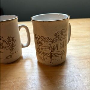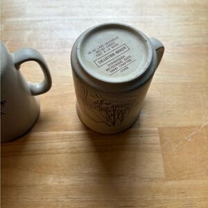 Set of two rustic cream ceramic mugs with charming illustrations. Perfect for cozy mornings.