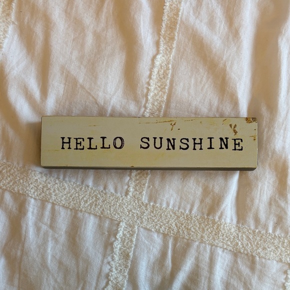 Brighten your space with this charming rustic cream wall sign featuring the phrase 'Hello Sunshine'. Perfect for adding a touch of warmth to any room.