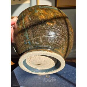 Lovely handmade bowl with an organic, random brown and blue glaze. It's quite large and would make a good mixing bowl or fruit bowl. It's in very good condition - it has a seam on the side that looks to be a defect from the manufacturing process. No chips or cracks.